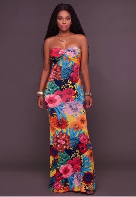 Multi-Color Print Key-Hole Back Maxi Dress